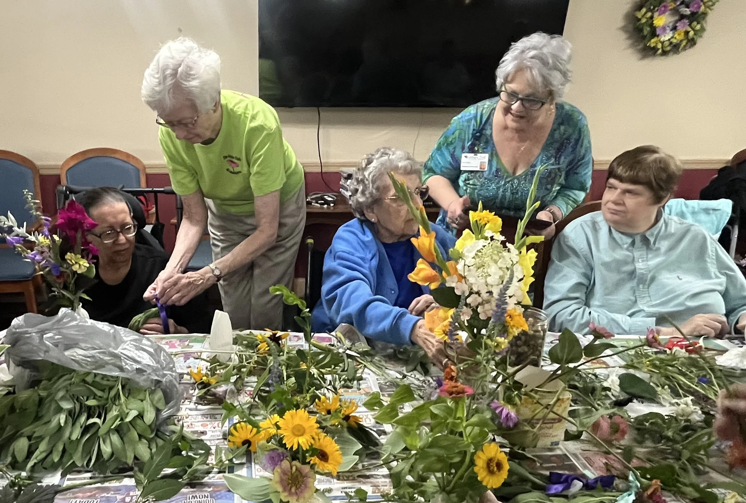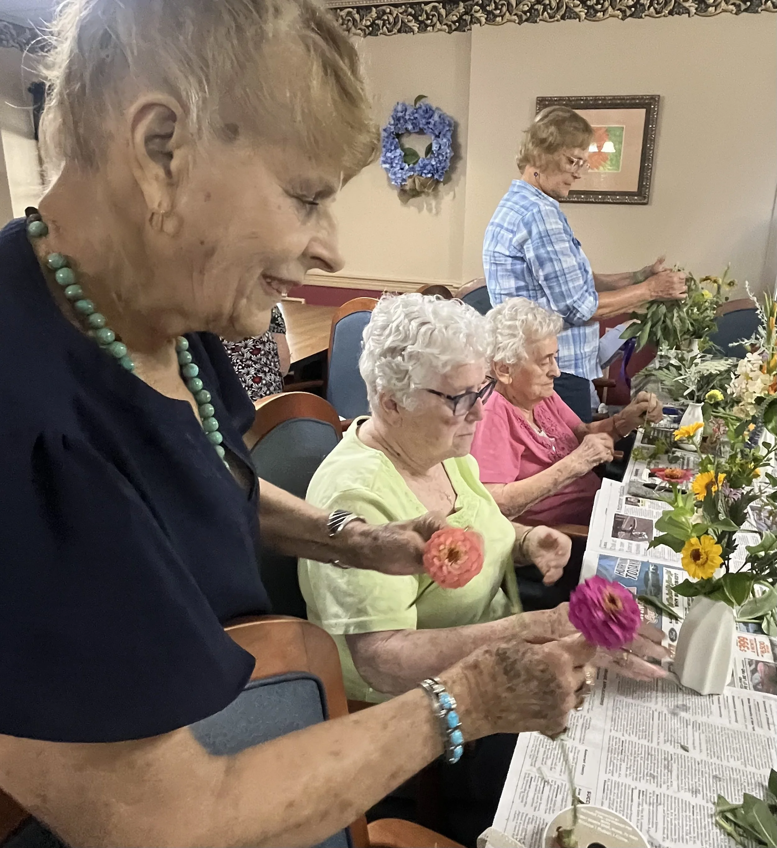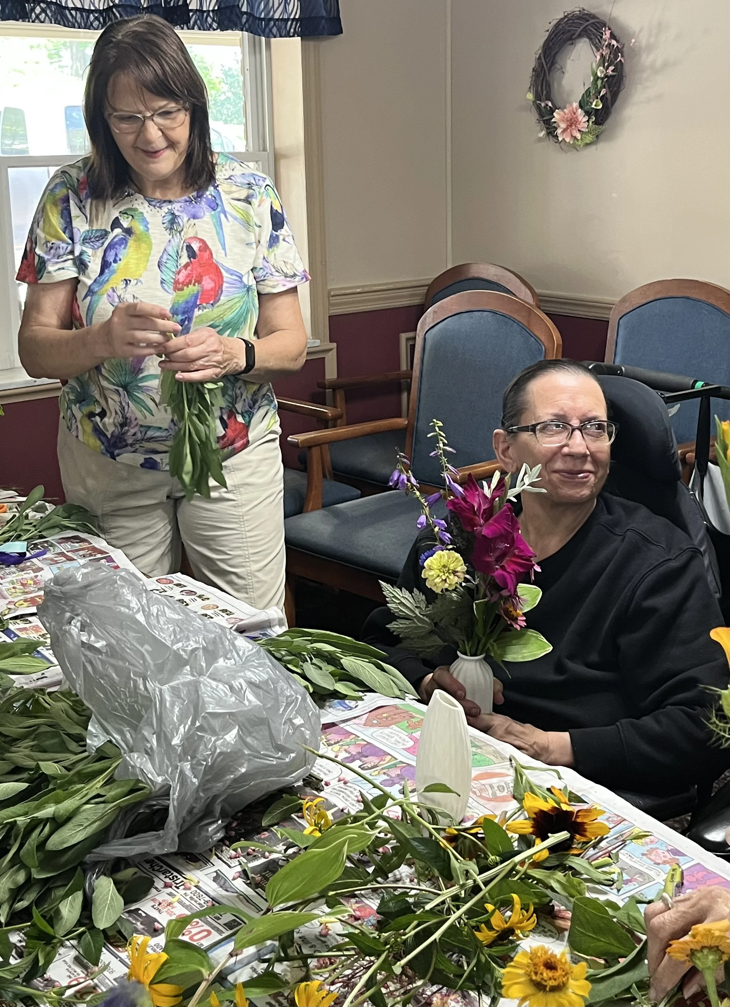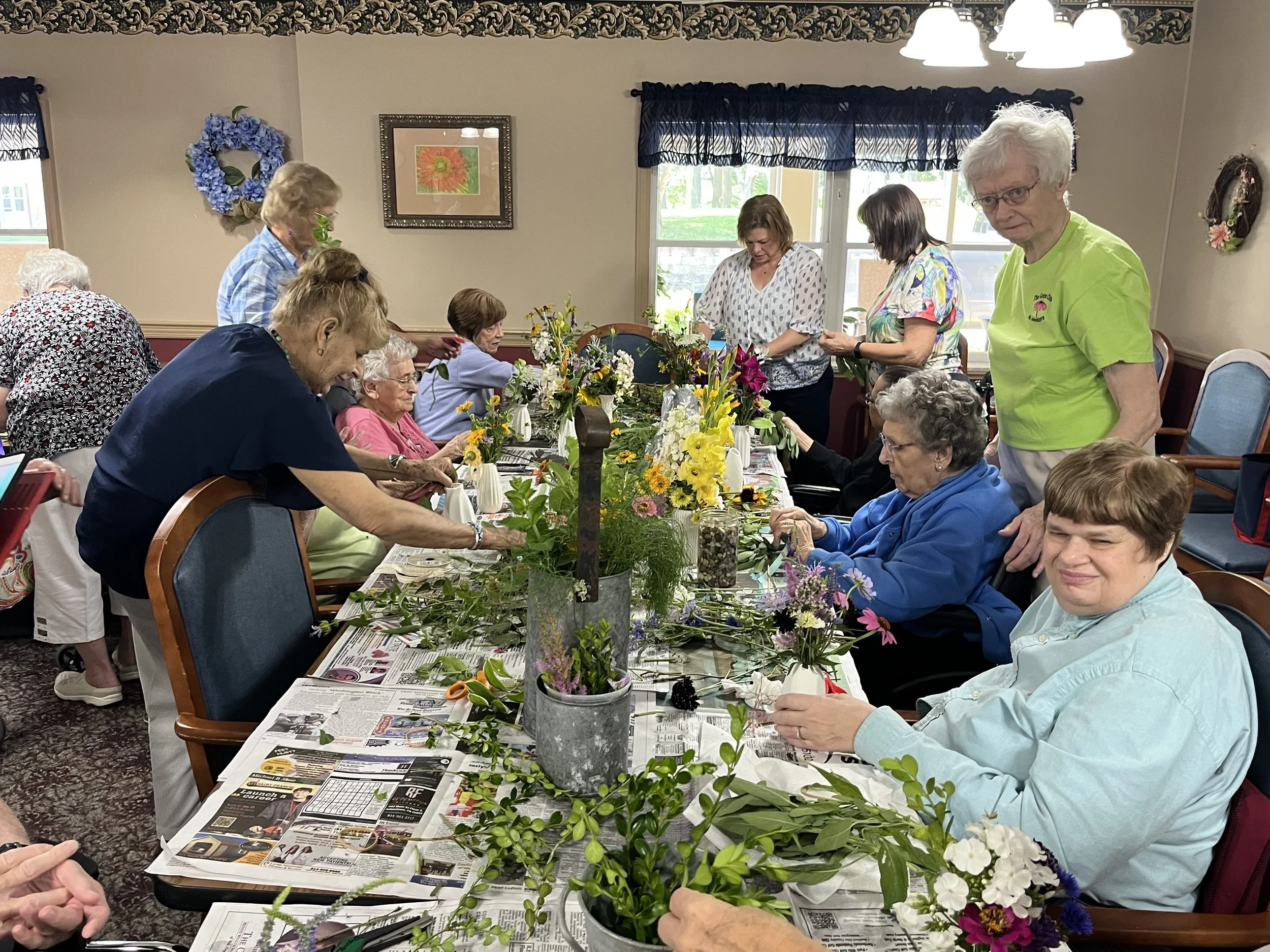 The Horticulture Therapy Committee visited Arbutus Retirement Community on July 21. With flowers from our gardens and purchased ones from Putnam Place Flower Farm, the retirees made lovely floral arrangements for their rooms.
