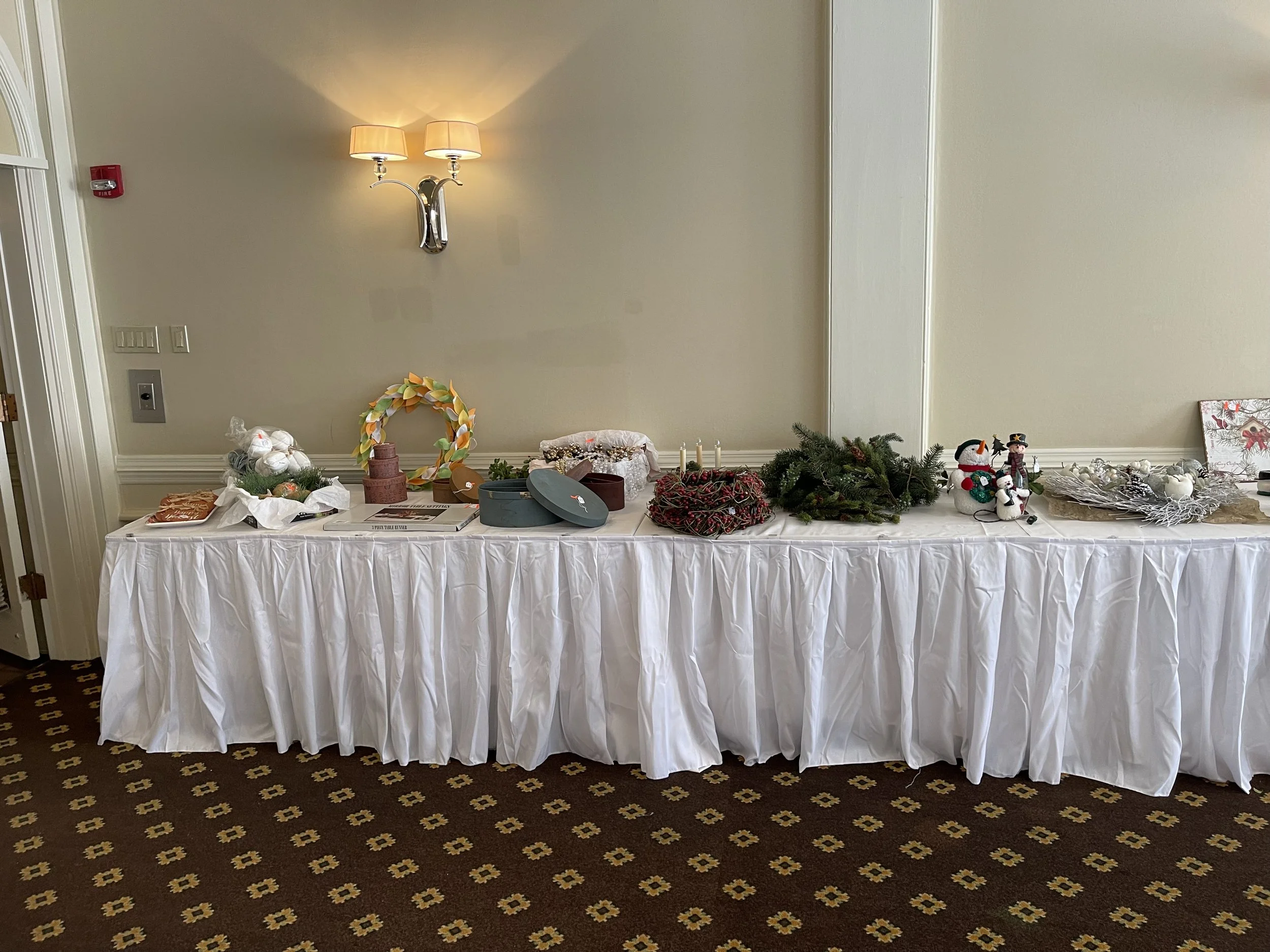 A very popular part of the event is our sale of gently used holiday decorations and gently appreciated art work. An addition this year was the sale of hydrangae wreaths, either square or oval shaped, with Carolyn Casey and Andy Fedore assisting in their sale.